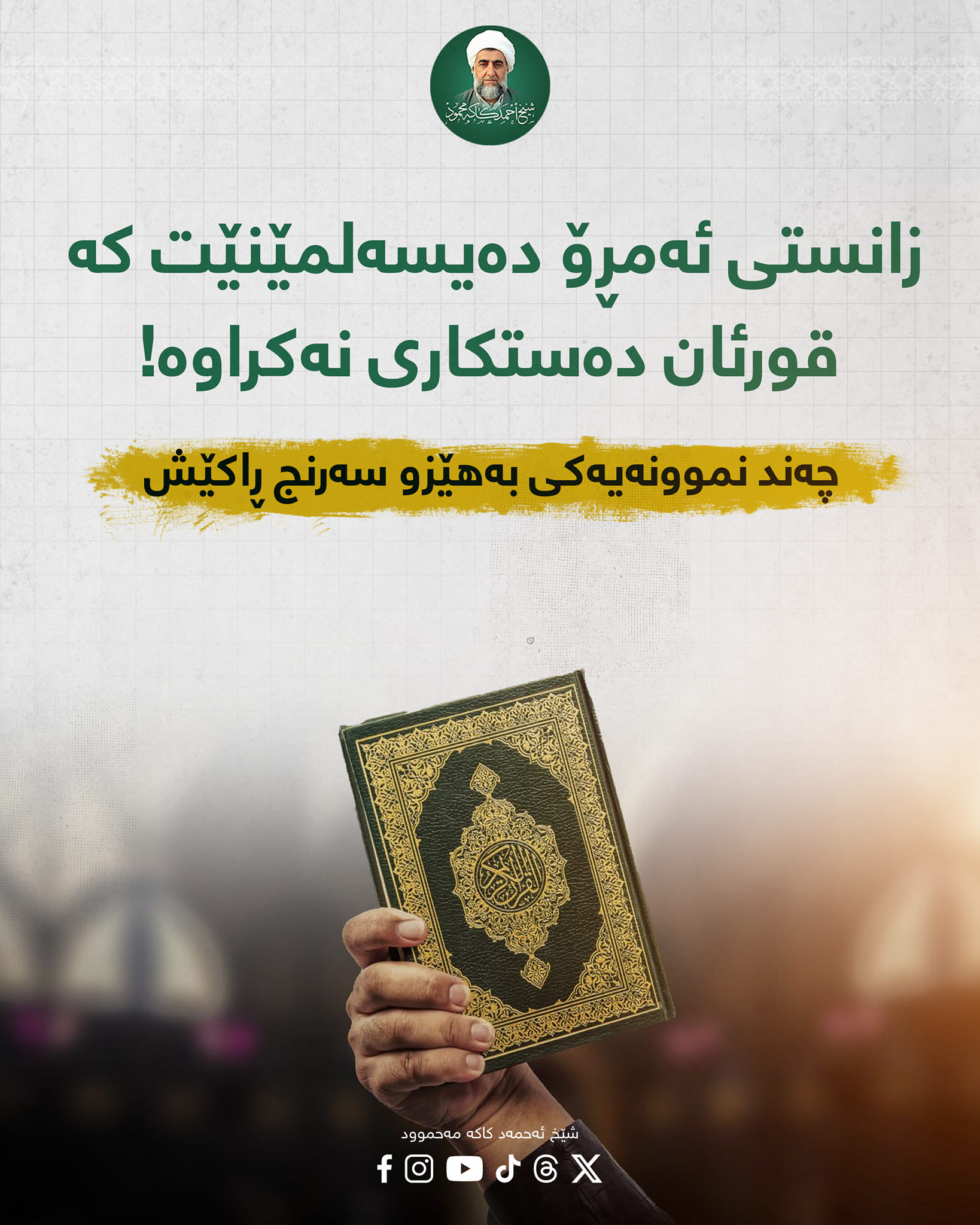 زانستی ئەمڕۆ دەیسەلمێنێت كە قورئان دەستكاری نەكراوەو پارێزراوە.! نووسینی/ پارێزەر: عبدالدائم الكحیل هەندێ پێیان وایە ئەو قورئانەی ئێستا لەبەر دەستماندایە ناتەواوە و چەندین ئایەتی دیار نەماوە.. لێرەوە دەپرسین ئایا زمانی ژمارەكان دەتوانن بیسەلمێنن ئەم بۆچوونە هەڵەیە؟ با بڕوانین..: ژمارە حەوت باشترین ژمارەیە كە حساباتەكانی قورئانی لەسەر بكەین لەبەر زۆر هۆكار، گرنگترینی ئەوەیە كە پەروەردگار سیستەمێكی لە گەردووندا داناوە لەسەر ژمارە حەوت بنیاتنراوە. بۆ نموونە: - هەموو گەردیلەیەكی گەردون لە حەوت چین پێكهاتووە. - هەروەها هەریەك لە زەوی و ئاسمان لە حەوت چین پێكهاتوون. - قورئانی پیرۆز بە گەورەترین سورەت (الفاتحة) دەستپێدەكات كە لە حەوت ئایەت پێكهاتووە (سبع المثاني). - وە یەكەم ژمارە لە قورئاندا باسكراوە ژمارە حەوتە، لە ئایەتی: هُوَ الَّذِي خَلَقَ لَكُم مَّا فِي الْأَرْضِ جَمِيعًا ثُمَّ اسْتَوَىٰ إِلَى السَّمَاءِ فَسَوَّاهُنَّ سَبْعَ سَمَاوَاتٍ ۚ وَهُوَ بِكُلِّ شَيْءٍ عَلِيمٌ ﴿٢٩﴾. البقرة. وەك دەزانین ژمارەی سورەتەكانی قورئان (114) سورەتن، ژمارەی ئایەتەكانی (6236) ئایەتن، ژمارەیەكی تری گرنگ هەیە ئەویش ژمارەی ساڵەكانی دابەزینی قورئانە كە (23) ساڵە. ئەم سێ ژمارەیە سیستەمێكی ژمارەیی سەرنجڕاكێش پێكدەهێنن، كاتێك ئەم ژمارانە دەخەینە پاڵ یەك، دەبینین دابەش دەبن بەسەر ژمارە حەوتدا و هیچیان لێ نامێنێتەوە. بۆ نموونە: بەزمانی وشەكان دەڵێین: خوای گەورە لە (23) ساڵدا (114) سورەتی دابەزاندووە. بە زمانی ژمارەكان دەنوسین: تەنیا دوو ژمارەكە دەخەینە پاڵ یەك ئەنجامەكەی (23114)، كە ئەم ژمارەیە بەهەردوو ئاڕاستەكە دابەشی ژمارە حەوت دەبێت و هیچی نامێنێتەوە. كاتێك ژمارەكە دەخوێنینەوە لە چەپەوە بۆ ڕاست (23114/7 = 3302) كاتێك ژمارەكە لە ڕاستەوە بۆ چەپ دەخوێنینەوە (41132/7 = 5876). بە زمانی وشەكان دەڵێین خوای گەورە ئایەتەكانی قورئان كە (6236) ئایەتە دابەزاندووە لە (23) ساڵدا. بەڵام بە زمانی ژمارەكان تەنیا ژمارەكان دادەنێین: ئەنجامەكەی (236236) كە ئەمیش بە هەردوو ئاڕاستەكە دابەشی ژمارە حەوت دەبێت و هیچی نامێنێتەوە . كاتێك ژمارەكە لە چەپەوە بۆ ڕاست دەخوێنینەوە (236236 / 7 = 33748) بەڵام كاتێك ژمارەكە لە ڕاستەوە بۆ چەپ دەخوێنینەوە (632632/ 7 = 90376) ئێستا ئەگەر بە زمانی وشەكان گوتمان: خوای گەورە (6236) ئایەتی داناوە لە (114) سورەتدا. دەتوانین ئەم ڕاستیە بە زمانی ژمارەكان دەرببڕین و تەنیا ژمارەكان دانێین: ئەنجامەكەی (1146236) دەبێت، كە ئەمیش بە هەردوو ئاڕاستەكە دابەشی ژمارە حەوت دەبێت و هیچی نامێنێتەوە!! كاتێك لە چەپەوە بۆ ڕاست ژمارەكە دەخوێنینەوە (1146236/ 7 = 163748) وە كاتێك لە ڕاستەوە بۆ چەپ ژمارەكە دەخوێنینەوە (6326411/ 7 = 903773) لێرەدا دەڵێن ئەگەر یەكێك لە هاوەڵان ئایەتێكی زیاد بكردایە یان كەمی بكردایە هەموو هاوكێشەكانی پێشوو تێكدەچوو. لەبەرئەوە ئەم هاوكێشانە بەڵگەن لەسەر ئەوەی قورئان دەستكاری نەكراوە و ناكرێت ئەمانە بخرێنە پاڵ ڕیكەوت. ♦️ ئەگەر دەتوانن و ڕاست دەکەن فەرموون تەنها ئایەتێک یان نیو ئایەت لە شێوەی قورئان بهێنن. پڕۆژە بانگەوازییەکانی شێخ احمد کاکە محمود رحمه الله.
