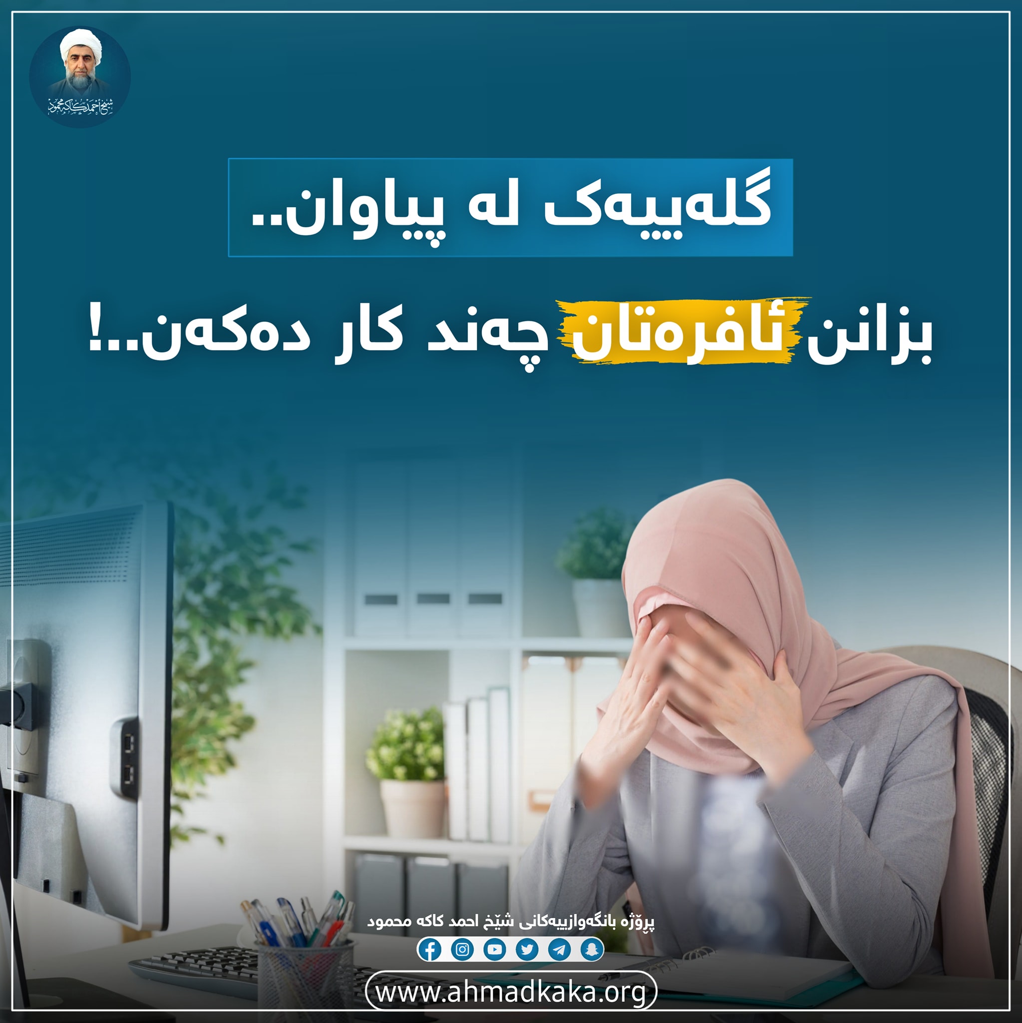 گلەییەک لە پیاوان.. بزانن ئافرەتان چەند ماندوون..! ئافرەت لەگەڵ ھەموو کارە زۆرەکانی لە ماڵەوە پێی دەگوترێت کار ناکات ! گفتوگۆیەک لەنێوان پیاوێک و پزیشکێکی دەروونی ... پزیشک: بەڕێزم کێشەت چییە ؟ پیاوەکە: ڕۆتینی ڕۆژانەو پاڵەپەستۆی کار. پزیشک: بەڕێزم تۆ چ کارێک دەکەی؟ پیاوەکە: ژمێریارم لە بانک. پزیشک: خێزانەکەت چ کارێک دەکات؟ پیاوەکە: ھیچ کارێک ناکات، ئافرەتی ماڵەوەیە. پزیشک: باشە بەیانیان کێ تۆ بەخەبەر دێنێت و منداڵەکان ئامادە دەکات و خواردنتان بۆ ئامادە دەکات؟ پیاوەکە: خێزانەکەم، چونکە ئافرەتی ماڵەوەیە. پزیشک: چ کاتێک لە خەو ھەڵدەستیت و چ کاتێک خێزانەکەت لەخەو ھەڵدەستێ؟ پیاوەکە: خێزانەکەم کاتژمێر پێنجی بەیانی و منیش کاتژمێر ٧ بەیانی، چونکە ئەو منداڵەکان و خواردنی بەیانیان ئامادە دەکات. پزیشک: کێ منداڵەکان دەباتە قوتابخانە؟ پیاوەکە: خێزانەکەم، چونکە کار ناکات. پزیشک: دوای ئەوەی خێزانت مناڵەکانی بردە قوتابخانە، تۆ چی دەکەیت و ئەو چی دەکات؟ پیاوەکە: من دەچمە دەوامی خۆم تا کاتژمێر سێی دوای نیوەڕۆ، خێزانەکەشم دەگەڕێتەوە ماڵەوەو جلەکان دەشوات و خواردنی نیوەڕۆ ئامادە دەکات و چاوەڕێی ھاتنەوەی منداڵەکان دەکات چونکە ئەو ھیچ کارێک ناکات. پزیشک: دوای ئەوەی ئێوارە لەکارەکەت دەگەڕێیتەوە چی دەکەیت؟ و خێزانت چی دەکات؟ پیاوەکە: دوای ئەوەی نانی نیوەڕۆ دەخۆم، کەمێک پشوو دەدەم چونکە لە کارەکەم زۆر ماندوو بوویمە، خێزانیشم لەگەڵ منداڵەکان دادەنیشێت و پێداچوونەوە بە وانەکانیان دەکات و دوای ئەمە بانگم دەکات بۆ ئەوەی چایەک بەیەکەوە بخۆینەوە. پزیشک: دوای ئەمە تۆ چی دەکەیت؟ و خێزانت چی دەکات؟ پیاوەکە من سەیری تەلەفزیۆن دەکەم و سەیری ڕۆژنامەکان دەکەم و گوێ لە ھەواڵەکان دەگرم و خێزانەکەشم نانی ئێوارە ئامادە دەکات و دوای نان خواردن قاپەکان دەشوات و ماڵەکە خاوێن دەکاتەوە و منداڵەکان بۆ بەیانی ئامادە دەکات. لە ئێستادا کامتان پێویستیتان بە پزیشکی دەروونی ھەیە، تۆ یاخود خێزانەکەت؟ کامتان زیاتر پێویستی بە پشوو ھەیە بە ھۆی ئەو پاڵەپەستۆیەی لە کارەکانی لەسەریەتی، تۆ یاخود خێزانت؟ ئایا ڕۆتینی ڕۆژانەی کارکردنی ئافرەت لە بەیانیەوە تا ئێوارە پێی دەگوترێت؛ کار ناکات !!! ڕۆژانە بۆ چەندین کاتژمێر کار دەکات بێ ئەوەی چاوەڕێی مووچەیەک یا پاداشتێک بێت و ھەر وەھا سوپاسێکی ئاڕاستە ناکرێت، لەگەڵ ئەمەش بێزار نابێت و گلەیی ناکات، لەگەڵ ھەموو ئەمەش پێی دەگوترێت کار ناکات. سڵاو بۆ ... ھەموو دایکێك ھەموو خوشکێك ھەموو ھاوژینێك ھەموو کچێك بەداخەوە بۆ ئەوانەی پێیان دەڵێن: کار ناكات... پڕۆژە بانگەوازییەکانی شێخ احمد کاکە محمود رحمه الله. www.ahmadkaka.org - www.dangiislam.org