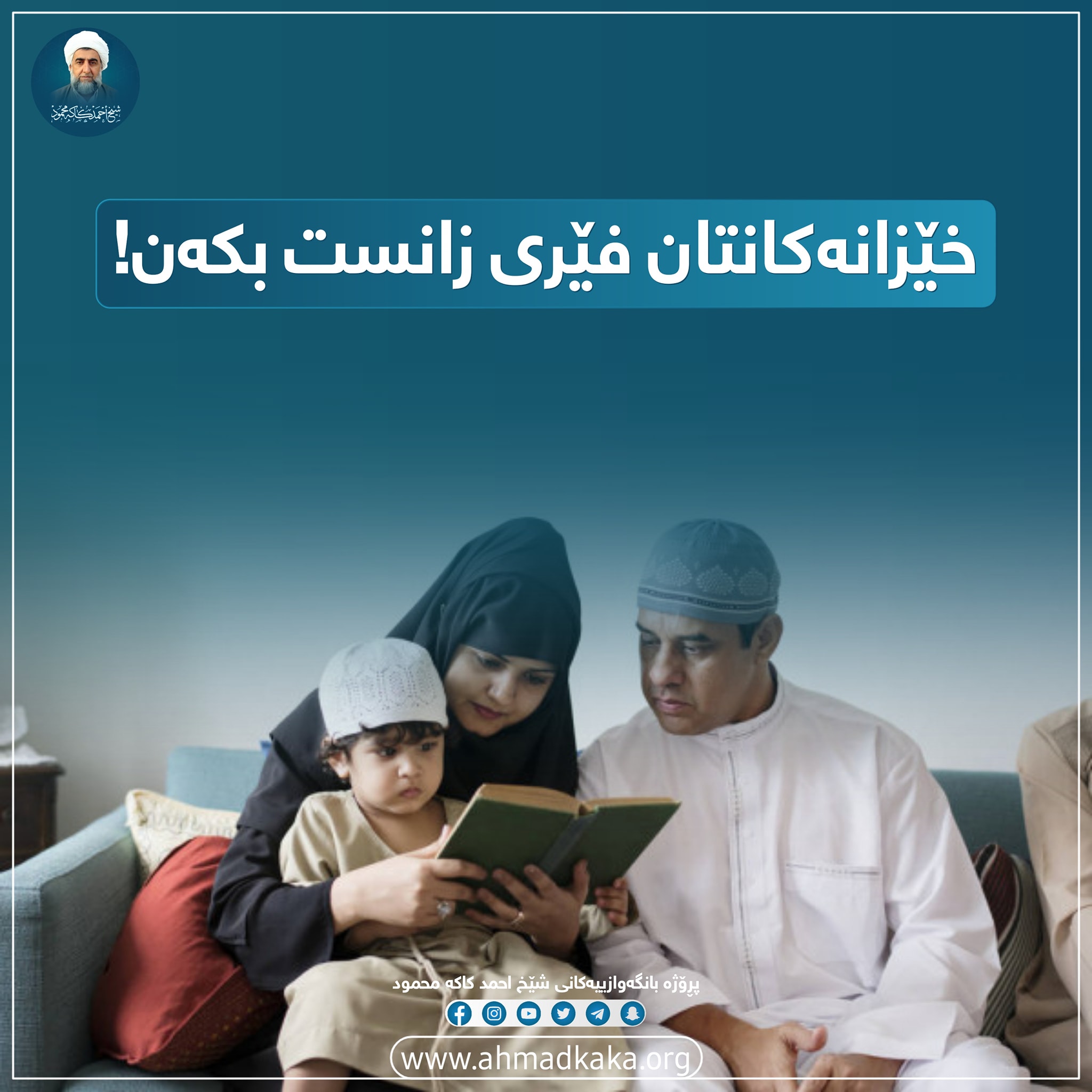 خێزانەکانتان فێری زانست بکەن.! زانای پایەبەرز قەیسی کوڕی عەمری مولائی فەرمویەتی: ژن لە,ڕۆژی دواییدا یەخەی پیاوەکەی دەگرێت لای پەروەردگارو ئەڵێ: ئەمە فێری نەئەکردم و ئەدەبی نەدام لەدونیاو هێچ شتێکی فێر نەئەکردم!! بەس نانی بازاڕی بۆ ئەهێنام!!!!! تفسیر السمعاني/دار الوطن 475-5. پڕۆژە بانگەوازییەکانی شێخ احمد کاکە محمود رحمه الله. www.ahmadkaka.org - www.dangiislam.org