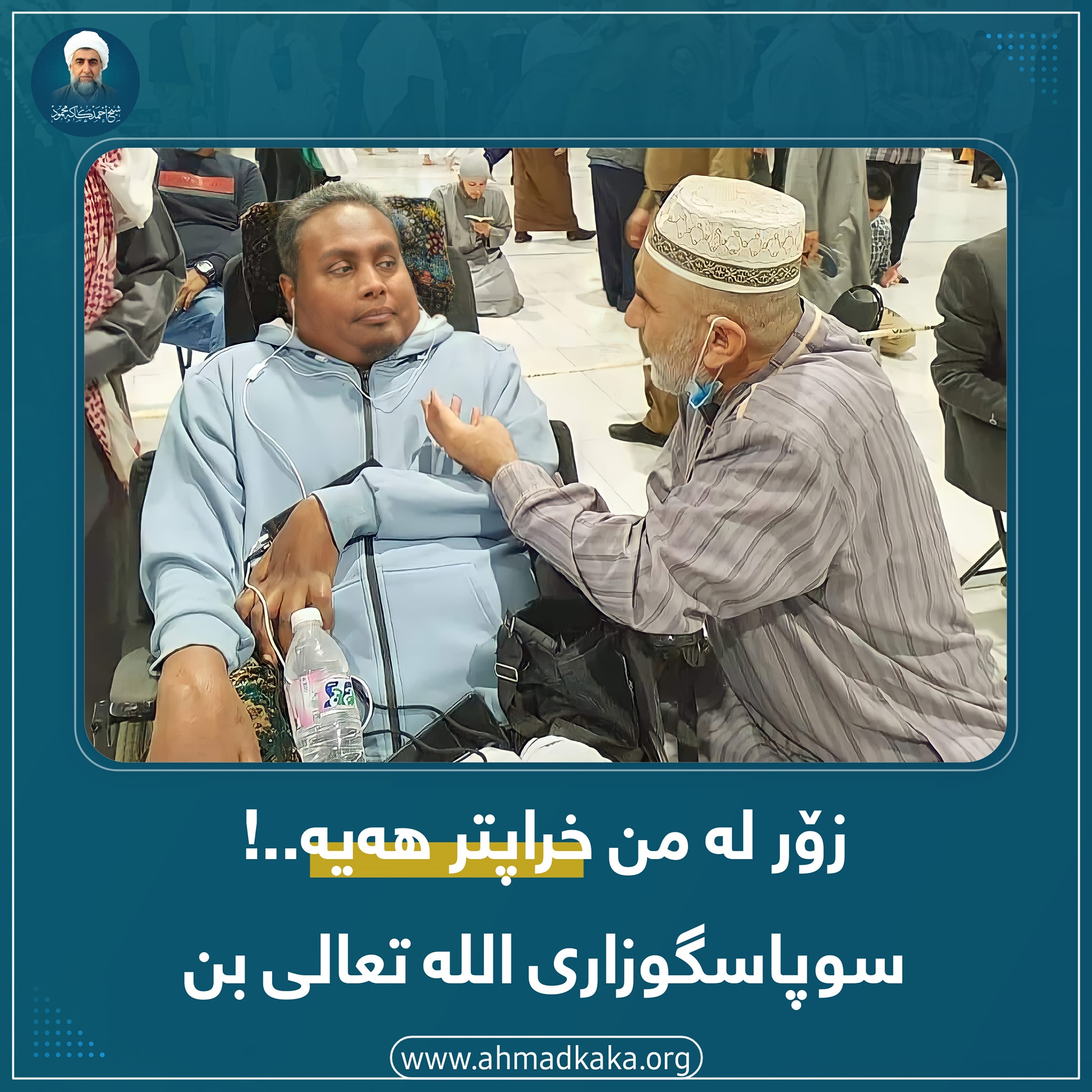 زۆر لە من خراپتر هەیە، سوپاسگوزاری اللە تعالی بن.! قەدەرێکی جوان..! لە ماڵەکەی خودا کە لەگەڵ ئەو پیاوە یەکتریمان بینی.. پێم گوت تۆ کەسێکی گەورەی کە هەموو لاشەت لەکار کەوتووە ئاواش سوپاس گوزاری و بەردوام خەڵک ئامۆژگاری دەکەی.. ئەویش پێی گوتم سوپاس بۆ خودا من زۆر باشم لەمن خراپتر هەیە.. گوتم چۆن..؟ گوتی کەسێک هەیە وکو منە و کەڕولاڵیشە، ڕۆژێکیان خێزانەکەی لە ماڵەوە بەجێی دەهێڵن لە ژوورەوە لەسەر کورسی خۆی.. دەرگای لەسەر دادەخەن تۆزێک دوا دەکەون.. کاتێک دەگەڕێنەوە ماڵەوە سەیر دەکەن لەژێر دەرگای ژورەکە خوێن ڕێچکەی گرتوە دێتە دەرەوە ئەوانیش بە پەلە دەرگایان کردەوە.. چی دەبینن؟ چەند مشکێک خەریکی خواردنی سەرە پەنجەکانی قاچەکانین ، هەموو سەرە پەنجەکانیان خواردوەو خوێنیان لێ بەربوەو لە بەرچاوی خۆی کە تەنها دەتوانێت سەیریان بکات و ناتوانێت لە خۆی دووریان بخاتەوە، چونکە نەدەنگ و نەجوڵەی هەیە تەنها چاوەکانی دەبینێت، ئایا ئەوە لەمن خراپتر نیە؟ گوتم ڕاست دەکەی، ئێمە هەست بە نیعمەت و بەخشینەکانی خوای گەورە ناکەین، تا لەدەستیان نەدەین، یان سەیری خوارەوەی خۆمان نەکەین. بۆیە خۆشەویستانم ئەوەی هەیتمان هی خۆمان نیە بەڵکو پێمان دراوە. بۆیە ئاگاداربن هەر کاتێک لێمان بسێندرێتەوە کەس ناتوانێت ڕزگامان بکات، بۆیە سوپاس گوزاربن. سوپاسگوزاریەکەش بەوە دەکرێت کە تاوانیان پێ نەکەین کە هەرکردەویەکی باش یان خراپ بکەین دڵمان ئاگادارمان دەکاتەوە. خودایە هەموو لایەکمان پارێزراوبین لە تاقیکردنەوەیەک کە بەرگەی نەگرین ئەی پەروەردگارا. ئامین. وەرگیراوە لە ئەکاونتی حاجی ئازاد عبدالوهاب. پڕۆژە بانگەوازییەکانی شێخ احمد کاکە محمود رحمه الله. www.ahmadkaka.org - www.dangiislam.org